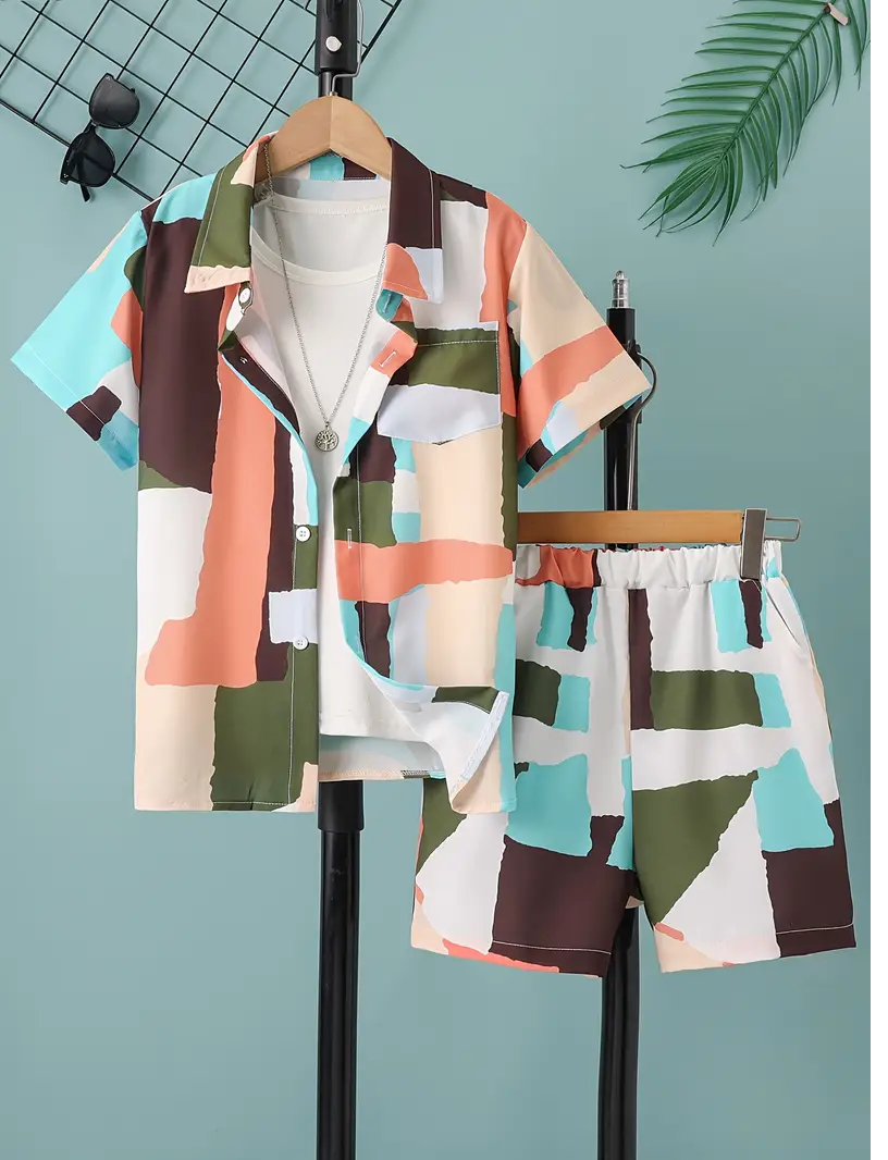 Elevate your everyday wardrobe with this men’s abstract printed co-ord set, designed for a clean, modern look with effortless appeal. Featuring a short-sleeve button-front shirt paired with matching shorts, this outfit delivers a perfectly coordinated style that feels relaxed yet refined.