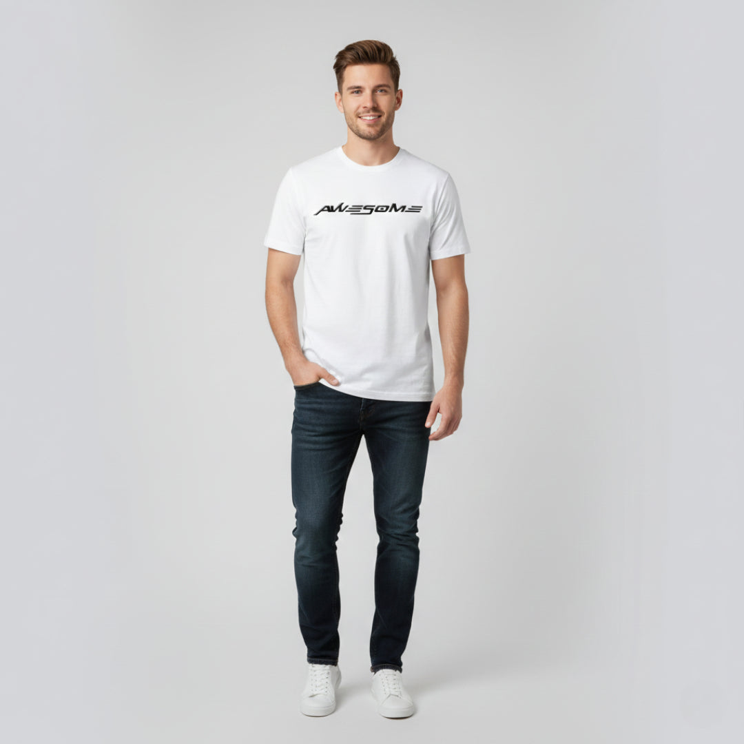 RIVANORA Men’s “Awesome” Graphic T-Shirt — Premium Casual Tee for Everyday Wear ( White )